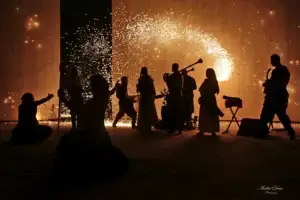 Vivez Pagan Club avec Rhésus et la Cie Ephéméria Circus ! Concert, jongleurs, danseurs et cracheuse de feu évoluent au son des percussions et cornemuses. 1 heure de spectacle pyrotechnique et envoûtant en soirée. Parvis de l’Hôtel de Ville.
