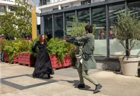 Un grand marché médiéval des artisans occupe la rue Jeanne d’Arc avec nocturne jusqu’à 21h le jeudi 14 mai. À l’Espace du Palais, la Mesnie du Sombre Acier propose des combats médiévaux scénarisés et chorégraphiés 3 fois par jour — laissez-vous emporter par le fracas des armes et l’intensité spectaculaire des affrontements d’antan ! Retrouvez aussi un espace de restauration médiévale et les ateliers jeux de société médiévaux du QG des Avenjoueurs. Entrée gratuite.